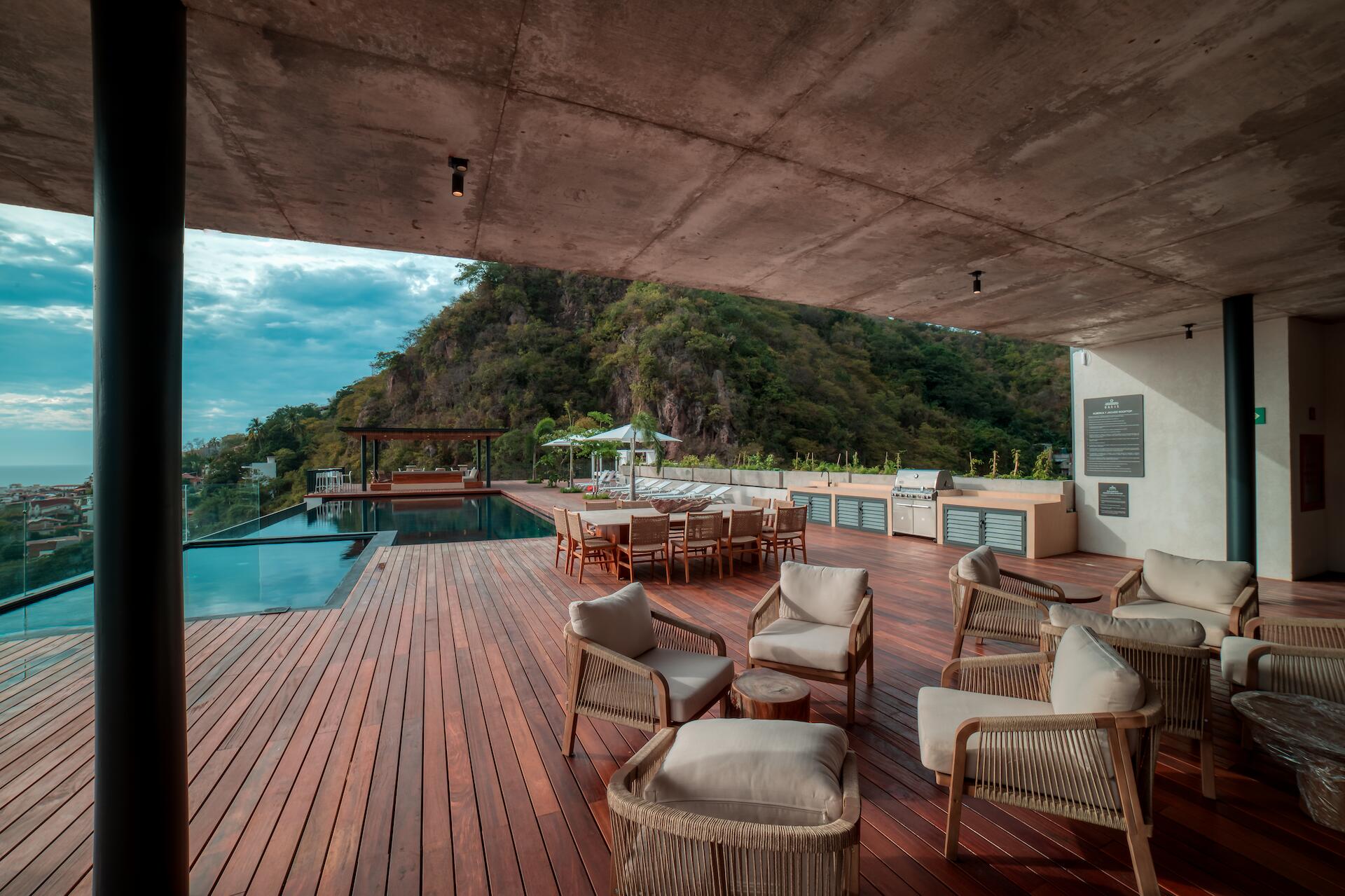 Oasis Vallarta is a newly built residential development located in the heart of Puerto Vallarta amongst lush tropical gardens in a privileged riverfront location just steps from the city's most popular restaurants, galleries, markets, and beaches. This practical one-bedroom flex condominium, with over 1,200 square feet. His unique location on the garden level provides easy access to the fully equipped fitness center, the lobby, and the co-working zones. Also, to the gardens with tropical landscaping, a heated riverfront swimming pool, private cabanas, a snack bar area, and more.
